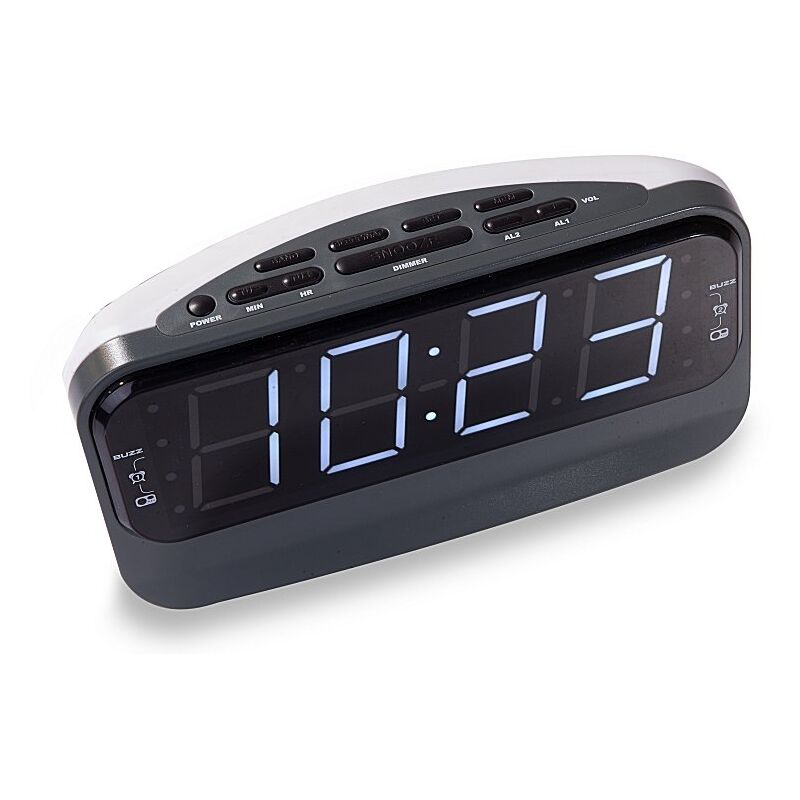 Sveglia con radio AM/FM, funzione Sleep e Snooze. Ampio display LED da 1,8" (4,6 CM). Il display è regolabile. Radiosveglia digitale AM/FM con sveglia e display LED extra large da 1,8" (4,6 CM). Dispone di una batteria di backup, sempre utile in caso di interruzione di corrente. Il display è dimmerabile.Dettagli tecniciFunzione snooze: SìRadio FM: SìAltoparlanti integrati: SìControllo volume: DigitaleDisplay retroilluminato: SìQuantità: 1DisplayDisplay: LEDColoreColore del prodotto: NeroPeso e dimensioniLarghezza: 19,4 cmAltezza: 6,8 cmProfondità: 9,2 cmPeso: 390 gConfezioneLarghezza confezione: 21,4 cmLunghezza imballo: 7,5 cmAltezza imballo: 11,6 cmPeso imballo: 470 g
