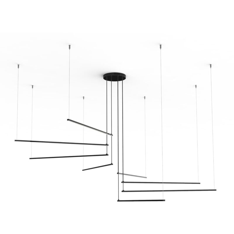 La lampada a sospensione Radius è un prodotto adatto per ambienti di lavoro interni o gli ambienti più importanti della tua casa. La lampada è costituita da otto profili in alluminio della lunghezza di un metro all'interno del quale viene alloggiata una Strip LED di nostra produzione. La diffusione della luce è garantita dal diffusore in PMMA satinato alloggiato sul lato esposto del profilo. I due cavi di sostegno permettono una facile regolazione in altezza della lampada. CARATTERISTICHE TECNICHE: Lunghezza del profilo: 100 cm Diametro del rosone: 25cm Potenza: W 136 Voltaggio: 24 V UTILIZZO: La lampada Radius è l'opzione ideale per illuminare gli ambienti più importanti della tua casa o ufficio, come il soggiorno o lo studio. Grazie alle sue caratteristiche tecniche di alta qualità e al design minimalista, questa lampada si adatta perfettamente a qualsiasi tipo di ambiente di lavoro, creando un'atmosfera calda e accogliente. La strip LED integrata sviluppa un'elevata efficienza