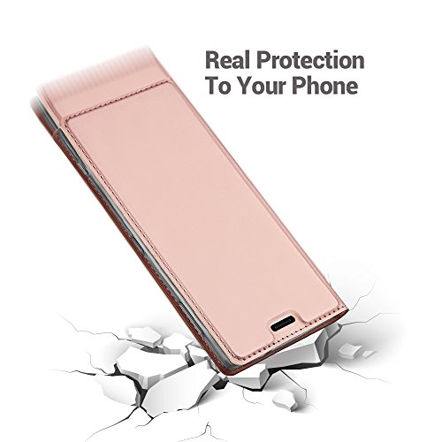 Radoo Cover Sony Xperia XZ2 Premium, Slim-Fit Folio Premium Custodia Vintage PU Pelle con Portafoglio Tasca Stile Unico Sottile TPU Antiurto Flip Cover a Libro per Sony XZ2 Premium (Rosa)