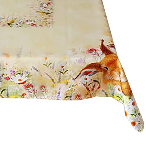 Raebel - Tovaglia primaverile giallo chiaro con stampa colorata di lepri su prato, ideale per Pasqua