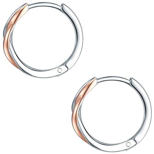Rafaela Donata, orecchini da donna in argento, oro rosato, con zirconi, colore: bianco, orecchini a cerchio in argento con zirconi, piccoli