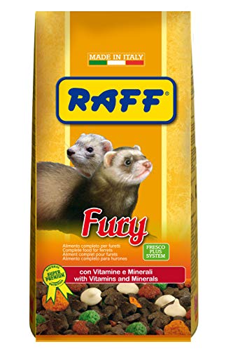 RAFF FURY è un mangime completo Super Premium di alta qualità per furetti con aggiunta di una piccola quantità di golosi "snacks"