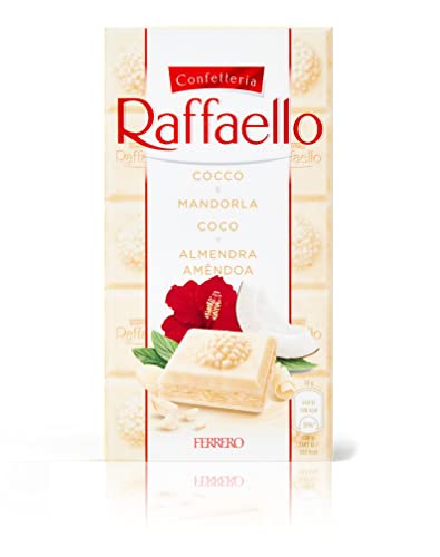 Il sapore unico di Raffaello nel nuovo formato tavoletta. Scarta la confezione e goditi questo squisito viaggio nel piacere del cioccolato;