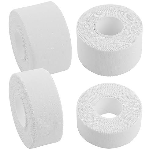 RAFIYU Set di 4 rotoli di nastro sportivo (3,8 cm x 10 m) (2,5 cm x 10 m), autoadesivo, per sport, bendaggio sportivo, delicato sulla pelle, nastro adesivo medico con forte adesività