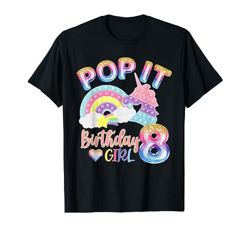 Ragazza di compleanno per festa pop a tema bambini pop it 8 ° anno vecchio Maglietta