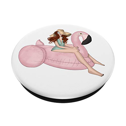 Ragazza con Flamingo in Beige Rosa & Teal AFB1269 PopSockets PopGrip: Impugnatura per Telefoni Cellulari e Tablet Intercambiabile