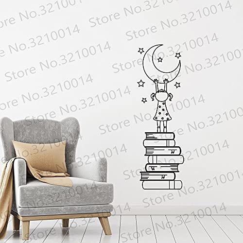 Ragazza Libri Luna Stelle Decalcomania Del Vinile Wall Sticker per Bambini Nursery Amore Lettura Decalcomania Della Parete Camera Da Letto Complementi Arredo Casa Simpatici Adesivi PW 42X107CM
