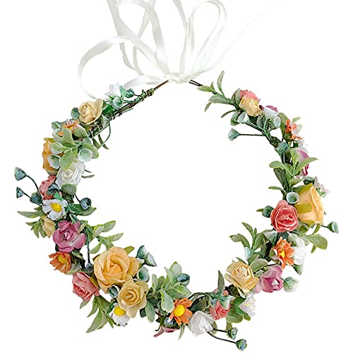 Ragazza Moda Corona di Fiori Fasce Floreali, Multicolore Fasce Corona di Rosa Fiore, Accessori per Capelli Ragazza Bohémien per Festa di Compleanno Festa Matrimonio Sposa Damigella d'Onore Ragazza
