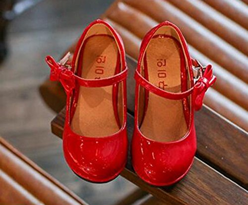 Ragazze Scarpe Bambini o Damigella Starppy Mary Jane Stile Scarpe Corte Blocco Basso Tacco Velcro Partito Formale Abito da Sera Sandali Rosso 31