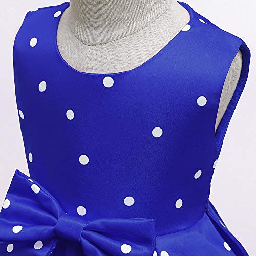 ♔ Vestito da bambina senza maniche, con stampa a pois, per feste, per damigelle d'onore, matrimoni, balli, compleanni, comunioni, battesimi