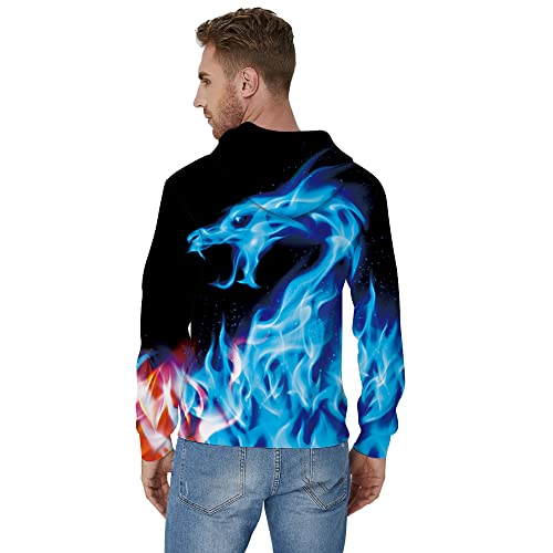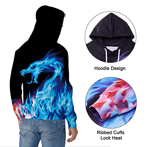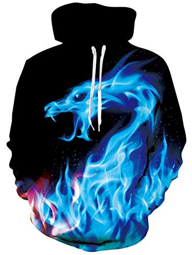 Ragazzi Drago Felpa Donna con Cappuccio Giacca Jumpers per Adolescenti Stampato 3D Uccello Hoodie Tasche Coulisse Casual Sweatshirt Bianca Blu S