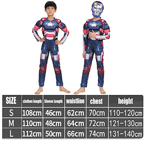 Ragazzi Iron Patriot Muscle Tuta Bambini Halloween Costume Cosplay Vestito Masquerade Giochi di ruolo Tuta Fan di film Onesies Outfit (Color: A-Iron, Size: Kids/L)