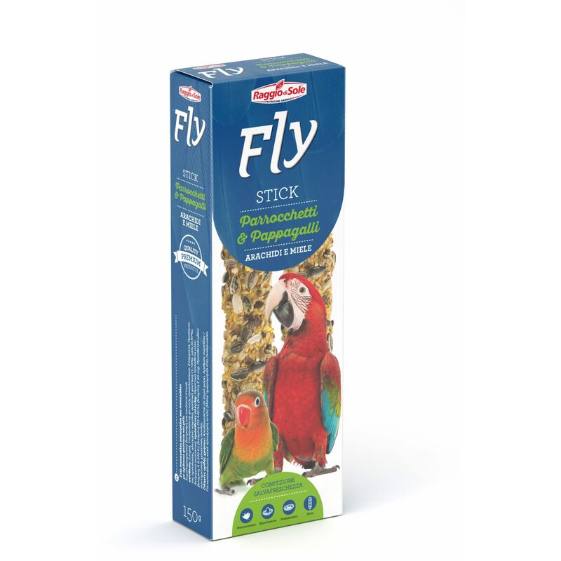 Gli Stick Parrocchetti e Pappagalli Arachidi e Miele della linea Fly Delicatesse di Raggio di Sole sono un goloso complemento alla dieta quotidiana dei parrocchetti e pappagalli, contengono arachidi e miele. il miele garantisce un ottimo apporto energetico e rappresenta un ricostituente naturale indispensabile per la salute dei parrocchetti e pappagalli, in particolare nella fase riproduttiva e della muta. Gli Stick Parrocchetti e Pappagalli Arachidi e Miele Fly sono un alimento complementare ideale per assicurare vitalità e benessere ai parrocchetti e pappagalli, rappresentando un delizioso divertimento da gustare in modo naturale.