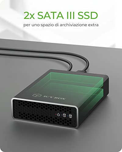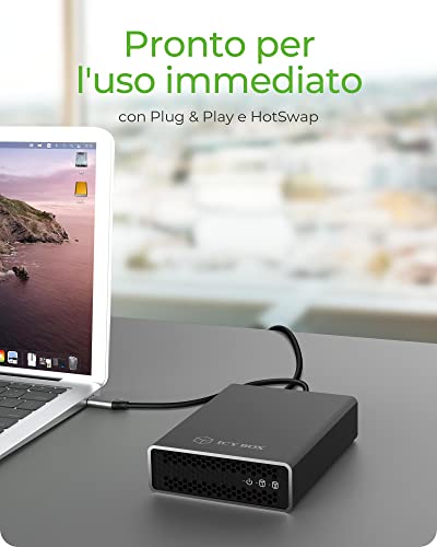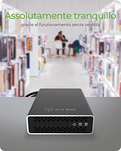 ICY BOX Design - Alloggiamento in alluminio senza ventole con telaio interno in plastica e LED di stato, interruttore On/Off, alimentatore