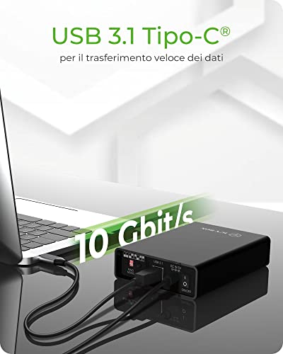 Connessione USB - Interfaccia USB 3.1 Gen 2 velocissima per velocità di trasferimento fino a 10 Gbit/s inclusi 2 cavi USB con connettore USB-C e USB-A, compatibile con porte Thunderbolt 3