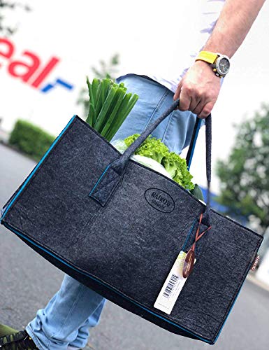 RAIKOU Borsa portalegna Cesta portalegna Camino Legno Borsa in Feltro per Legna da caminetto Oppure per giornali Cesto portariviste (50 x 34 x 27cm,Grigio/Blu)