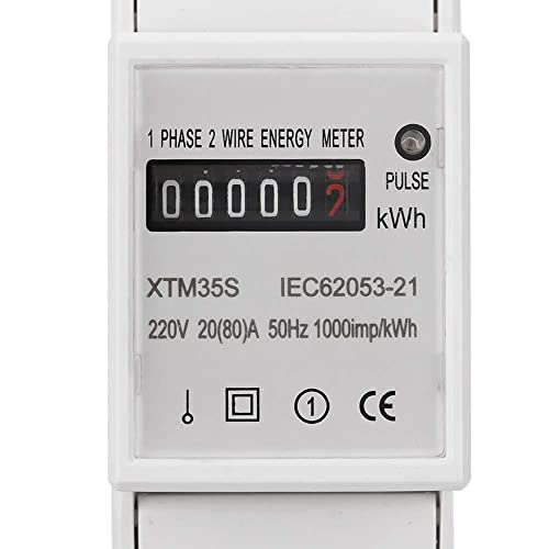 KWh Din Rail Meter - 220V 20 (80) A Digital monofase 2 fili 2P DIN-Rail Contatore Elettrico, Contatore di Energia Monofase con LED Retroilluminazione 1000KWh [Classe di efficienza energetica A]
