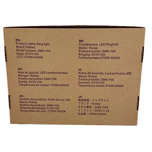 Luce ad Anello LED Rotante 360° e Treppiede Regolabile-- Railee ring light è dotata di una testa a sfera ruotabile a 360°,Cioe' la luce esterno può essere facilmente regolata all'angolazione desiderata. Il treppiede Ring Light è realizzato in lega di ferro con resistenza eccellente. Altezza regolabile da 39cm a 130cm in base alle proprie esigenze. C'è anche un treppiede da scrivania incluso per mettere il trucco sul tavolo. I treppiedi sono compatibili con la maggior parte delle fotocamere.