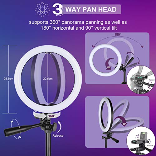 Railee Luce ad Anello LED con Treppiede, 10" Ring Light Luce Tik Tok 21 Modalità Colore RGB e 9 Luminosità Luce LED Anello Alimentazione USB per TikTok, Trucco, Selfie, YouTube Video e Fotografia
