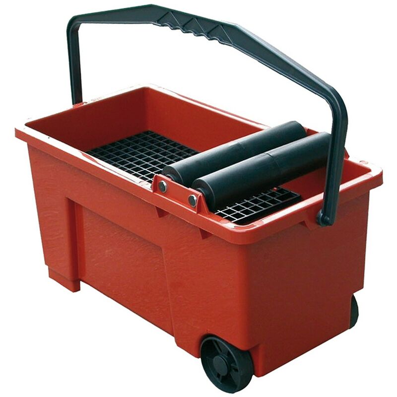 VASCA IN PLASTICA ANTIURTO, SU DUE RUOTE PIù DUE PIEDI. DUE RULLI IN PLASTICA SU BOCCOLE ANTIUSURA E GRIGLIA IN PLASTICA.LT.25