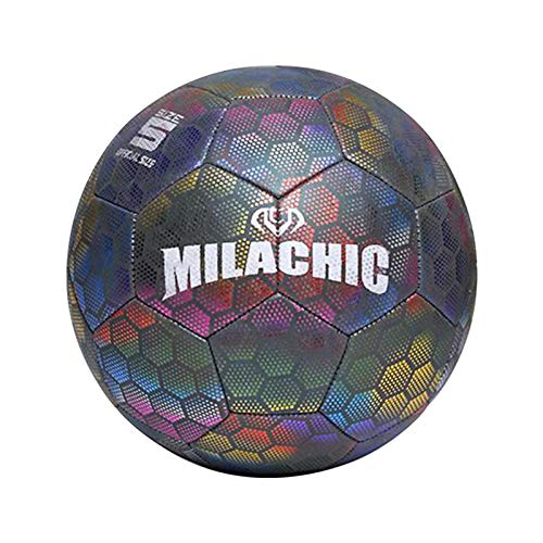 Rainai Pallone da calcio luminoso olografico luminoso riflettente, palla da calcio illuminata al buio in Croma, flash luminoso per fotocamera e sfera cromata riflettente per bambini