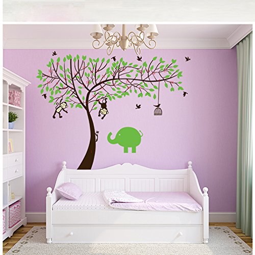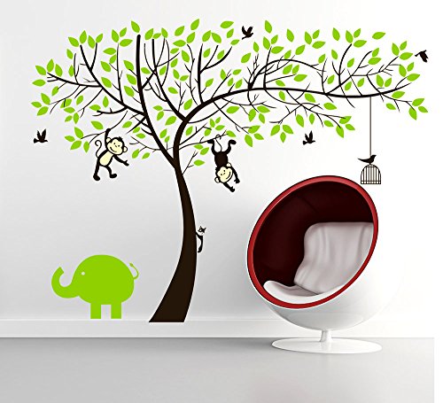 Rainbow Fox - Adesivo da parete, motivo: scimmia ed elefante che giocano su un albero, per cameretta dei bambini