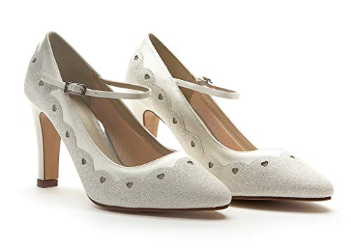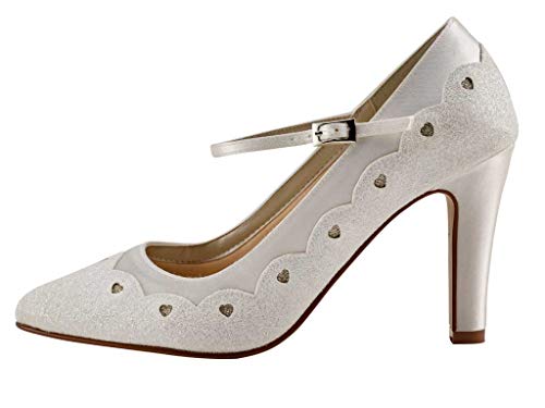Rainbow Club Scarpe da sposa Trixie - Donna Pumps Satin Glitter Imbottite, Avorio panna, 38.5 EU