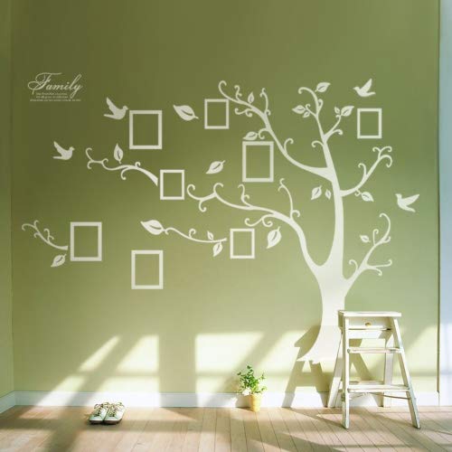 Rainbow Fox, grande cornice nera adesiva da parete, Art Wall, a forma di albero con rami ed uccellini, 8 cornici portafoto incluse, frase adesiva sulla famiglia, misura 180 x 250 cm, colore nero;