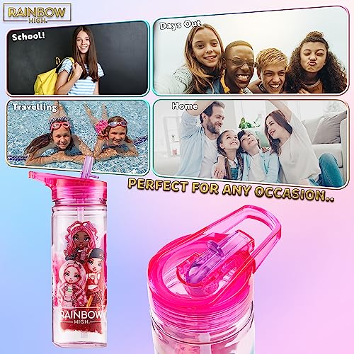 Rainbow High Borraccia Bambina - Borraccia con Cannuccia 580ml Borraccia Bambini Scuola Borraccia Sport Borraccia di Plastica Riutilizzabile senza BPA