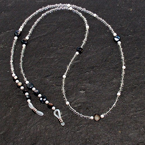 Fatte mano con acrilico di vetro. Adatto per occhiali, occhiali da lettura, occhiali da sole ecc. Gomma di silicone regolabile termina con bobine di metallo, è sufficiente spostare il pezzo di metallo a spirale così terrà stretto per gli occhiali, non è facile cadere. Lunghezza: 75 cm. Larghezza: 3 mm.