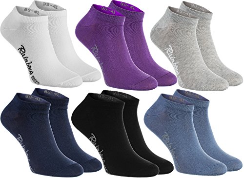 Rainbow Socks - Donna Uomo Colorate Calzini Corti di Cotone - 6 Paia - Bianco Porpora Grigio Blu Marina Nero - Taglia 44-46