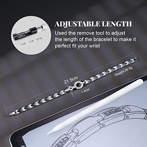 Materiali Di Alta Qualità: Acciaio al titanio ecologico bracciali, lucidatura delicata, finitura a specchio e lunga tenuta del colore. È molto adatto per l'uso quotidiano.Braccialetto magnetico con potenti magneti ad alta potenza (3500 gauss), non solo ha un design elegante, ma ha anche effetti sulla salute, permettendoti di indossarlo con eleganza e migliorare la tua salute.