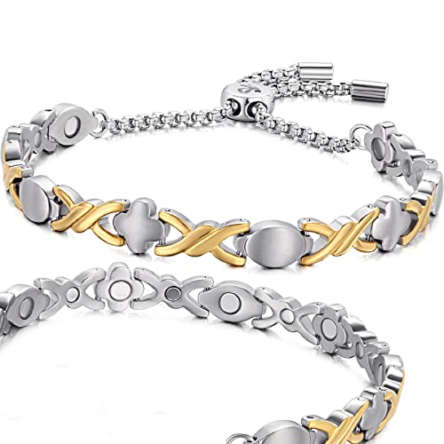 RainSo Braccialetto magnetico da donna, in titanio, leggero, regolabile, con scatola di visualizzazione