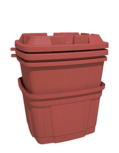 Rainwater Terrace Cisterna d'Acqua 134 Litri a 2 Livelli, con 1 Vaso per Piante Superiore, 3 vasi di Piante Laterali - Terracotta