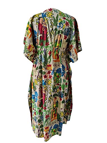 Rajbhoomi Vestito Lungo Caftano Stampato Cotone Indiano Stampato Caftano delle Donne, Beige, 3XL