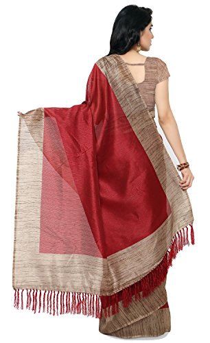 Saree Fabric: Tussar Silk /Saree Color: Maroon / Saree Length: Including Blouse 6.3 M (5.5 M + 0.8 M = 6.3 M ) / Saree Width: 1.2 M