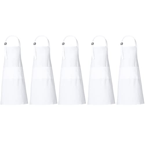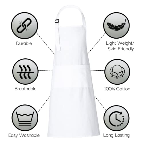 RAJRANG BRINGING RAJASTHAN TO YOU Grembiule in cotone bianco Set di 5 - Grembiuli bavaglino con collo regolabile da cucina Kichen per uomo e donna 35x27