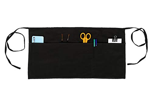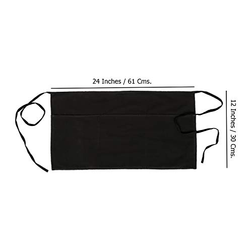 RAJRANG BRINGING RAJASTHAN TO YOU Grembiule in vita per donna in puro cotone Set di 10 cinghie regolabili di colore nero Macellai cameriera cuochi grembiuli corti da cucina con 3 tasche grandi