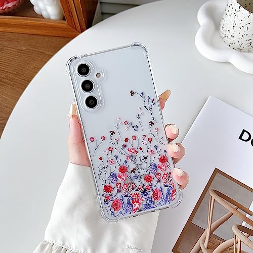RALEAVO Custodia floreale per Samsung Galaxy A54 5G, custodia trasparente a forma di fiore sottile per ragazze donne, custodia protettiva in morbido TPU trasparente con angoli rinforzati, fiore rosso