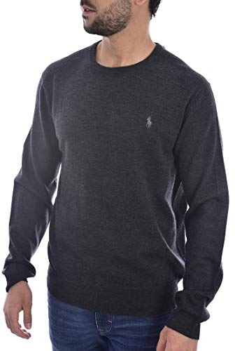 Ralph Lauren Maglione da uomo in lana merino, girocollo o scollo a V, granito, XXL