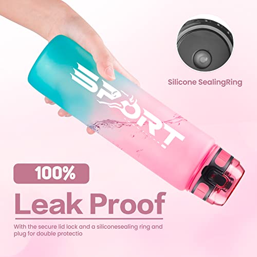 【Design funzionale portatile】: il serbatoio dell'acqua portatile da 1000 ml Tritan da 1 l dispone di un coperchio ribaltabile e di una serratura sicura, che la rende a prova di polvere e perdite. Il pop-up a clic a mano ti piacerà di più l'acqua potabile senza doversi preoccupare di fuoriuscite. Questo design compatto con tracolla e corpo rotondo smerigliato lo rende molto comodo per escursioni, ciclismo, campeggio, corsa, yoga o.