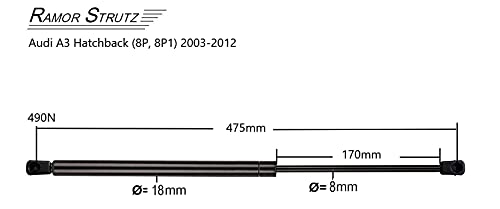 Ramor Strutz 2 Molle a Gas per Portellone Posteriore Compatibili con Audi A3 Hatchback (8P) 2003-2012 Remplacement du numéro de pièce 8P3827552C, 8P3827552B, 8P3827552E, 8P3827552A