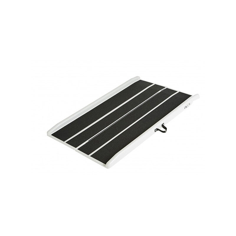 USO - Rampa di accesso per disabili per l'attraversamento quotidiano di piccoli gradini o porte-finestre da parte di persone in sedia a rotelle - Non richiede manutenzione ed è facile da maneggiare - Poco ingombrante, può essere spostata e riposta facilmente in un armadietto - Può essere utilizzata anche per accedere a edifici pubblici, come negozi, hotel, studi medici e ristoranti - Robusto e leggero, consente un utilizzo quotidiano in azienda. CARATTERISTICHE - Leggero e portatile - Realizzato in fibra di vetro rinforzata non corrosiva - Scacciaruota - Superficie antiscivolo - Maniglia per il trasporto