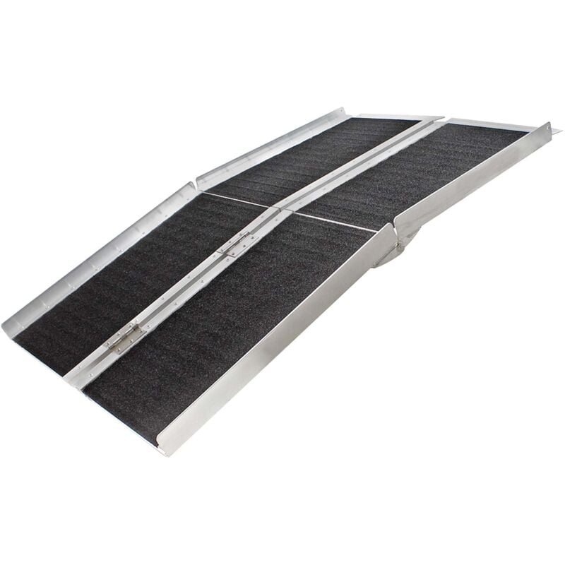 Rampa per sedie a rotelle pieghevole in 4 sezioni, in alluminio leggero, facile da trasportare. Salire non sarà più faticoso: un eccellente aiuto che permette un accesso senza barriere . Grazie alla struttura pieghevole, conservare la rampa risulterà semplice e poco ingombrante . Il vantaggio sta nel fatto che la rampa è composta da un solo elemento e non da due guide, che devono essere regolate alla giusta distanza l'una dall'altra. La rampa può essere facilmente piegata nel senso della lunghezza ed in quello della larghezza e, poiché pesa solo 20 kg, può essere trasportata facilmente come una valigia. Grazie alla sua capacità di carico di 270 kg, la sua maneggevolezza e versatilità, questo prodotto sarà per voi un aiuto validissimo. La superficie della rampa è rivestita di materiale antiscivolo ;