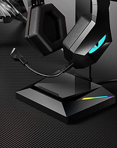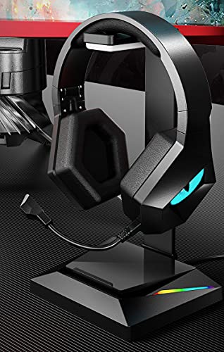 Rampi Peripherals Supporto per cuffie da gioco RGB in alluminio. Supporto per ricaricare cuffie da tavolo con porte USB - USB C e luci a LED