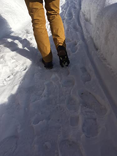 Ramponi Girafus PER scarpe antiscivolo RAMPONI ELASTICI con denti in acciaio inox per le scalate invernali- NIENTE SCIVOLAMENTI SU GHIACCIO e neve per donne uomini, anziani e bambini - Size L