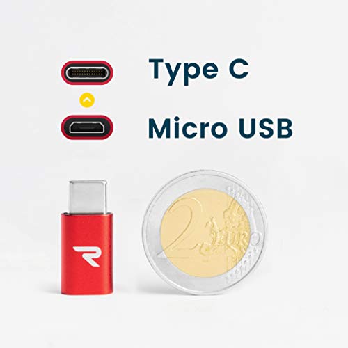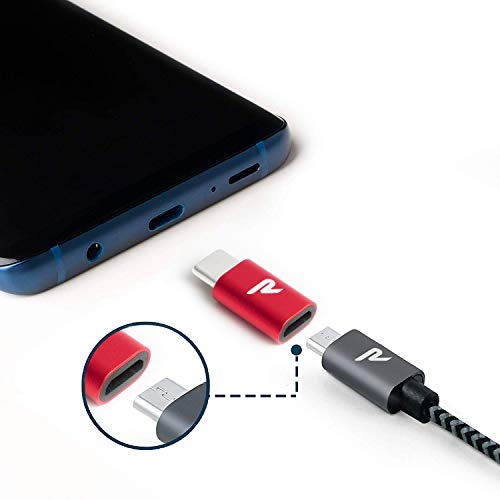RAMPOW Adattatore Micro USB a USB C [2 Pezzi] Adattatore USB C - Adattatore USB C a Micro USB Compatibile con Samsung Galaxy S8 / S8+, Huawei P9, OnePlus 2/3, Lumia 950 / 950XL ECC. - Rosso