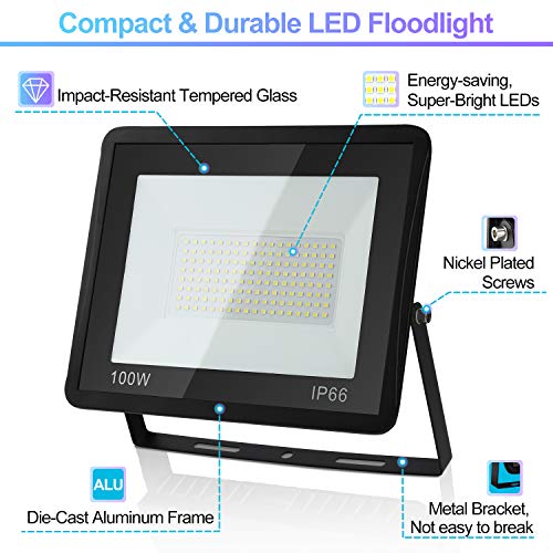 Randaco 100W Faretto LED da Esterno, 8500LM Bianco Freddo 6000K Fari LED Lampada Super Luminosa Proiettore Faro LED da Esterno, Impermeabile IP66 Per Giardino Casa (Nessuna Spina 2PCS)