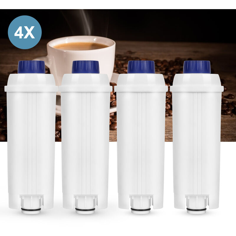 ※1 La cartuccia contiene resine a scambio ionico di alta qualità e carbone attivo per stabilizzare il carbonato di calcio e le impurità come il cloro e il calcare per garantire che l'acqua fresca rimanga pulita, migliorare il gusto del caffè, aumentare le prestazioni e prolungare la vita della macchina. ※2. Filtro per un massimo di 60 litri d'acqua o fino a 2 mesi di uso continuo (la durata effettiva dipende dalla qualità e dalla durezza dell'acqua). ※3. Adatto per Delonghi con DLS C002, ECAM, ETAM, EC680, EC800 Facile e veloce da installare. ※4. Conveniente e di alta qualità, per ridurre i costi del caffè. Fornito con: 4x filtri acqua compatibili con DLSC002.