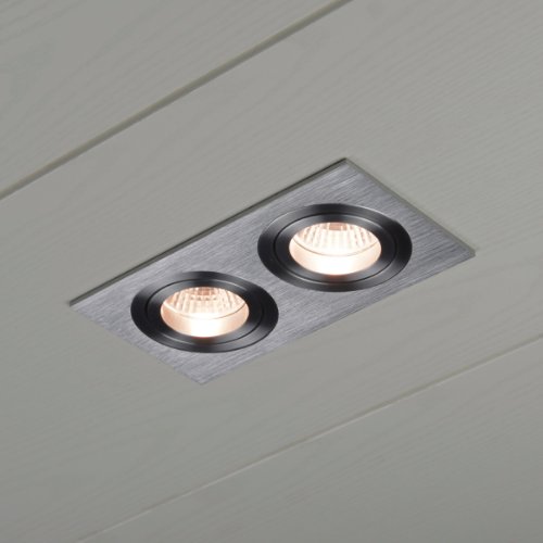 Ranex RA-INDOOR14 Lampada Rettangolare da Incasso Louise, 2 Faretti Orientabili in Alluminio, Argento